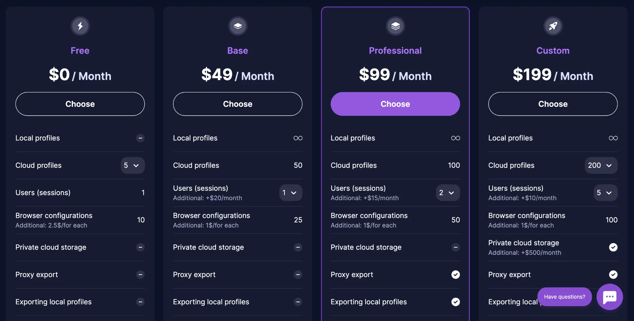 This anti-detection browser is not just about features. It's also tuned for the smooth operation of large teams.Over 33 Permissions Settings for Team Collaboration- Role Division - Users with administrator rights in Undetectable can create roles and assign them a specific set of permissions and accesses.- Grouping of Profiles - The system allows the grouping of profiles and gives users access to multiple groups, which widens the scope for segmenting permissions among team members.- Cloud web panel - Administrators can manage roles, groups, and sessions, and watch the status of cloud profiles in real time.